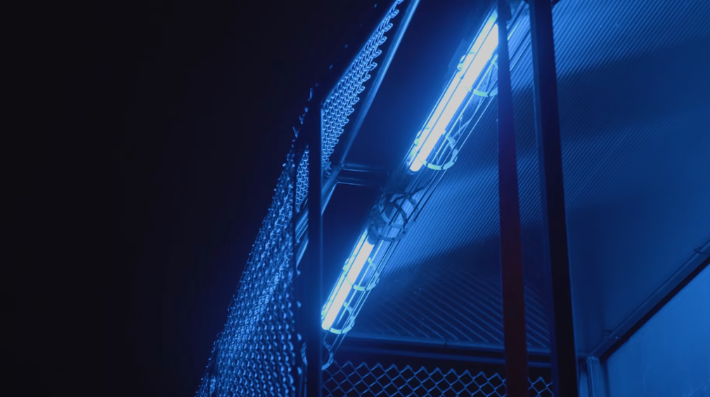 In diesem Kontext ist die Arbeit »Cage« entstanden. In einer Intervention am Ostbahnhof wurde ein Stahlkäfig an eine Plakatwand montiert. Ein absolut lebensfeindlicher Rückzugsort an einer Konstrukt, die einzig und allein für den Zweck erschaffen wurde, Werbung für die Konsumgesellschaft zu tragen. Das blaue Licht im Käfig nimmt Bezug auf die Beleuchtung in den Frankfurter U-Bahn Schächten, die die Venen des Menschen unsichtbar macht, um intravenösen Drogenkonsum zu verhindern.