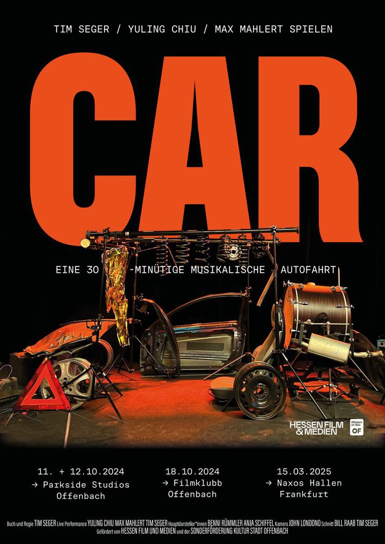 Drei Schlagzeuger_innen bringen einen alltäglichen Moment auf eine ungewöhnliche Bühne: HfG-Alumnus Tim Seger, Yuling Chiu und Max Mahlert vertonen ein Auto. Zwischen Filmprojektion und Bühne entsteht aus Motoren, Baustellen, und dem Flattern des Windes ein Soundtrack, der einlädt die Klangwelt unseres Alltags anders kennen zu lernen.