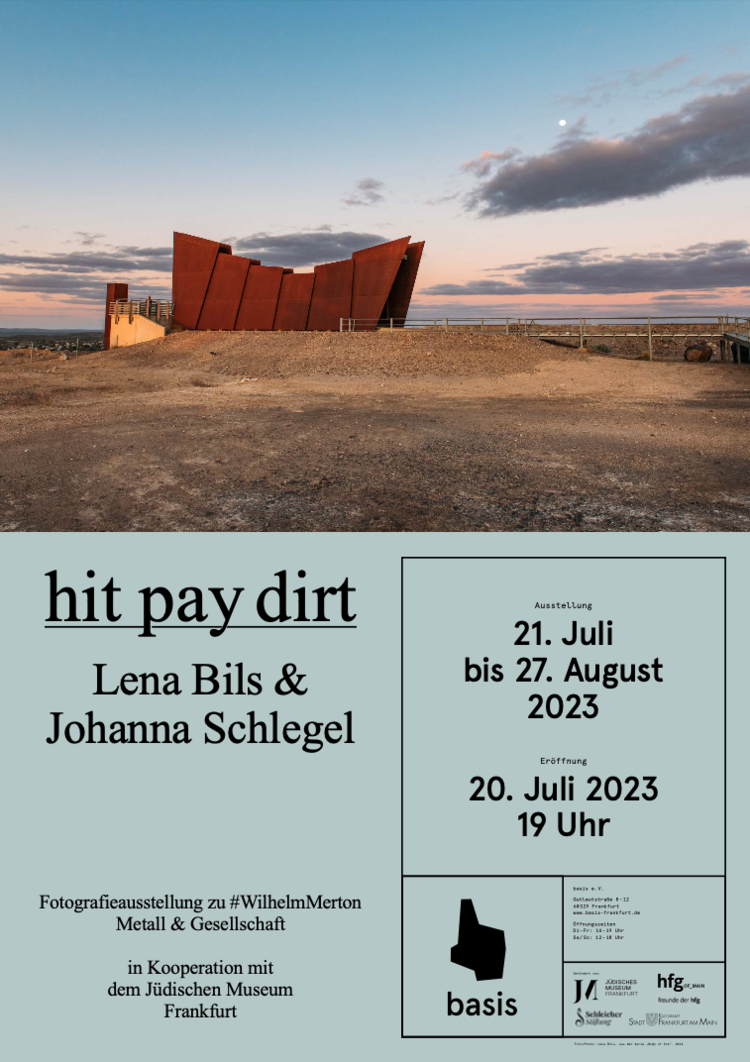 »hit pay dirt« fügt sich ins Rahmenprogramm des Frankfurter Wilhelm Merton-Jubiläumsjahres ein. Die in der basis gezeigten Arbeiten ermöglichen ein detailliertes und umfangreiches Bild auf zwei unterschiedliche Aspekte von Mertons Wirken: die Auswirkungen des Bergbaus der Metallgesellschaft im australischen Broken Hill und die geschichtliche Verwebung eines Porträtgemäldes Wilhelm Mertons über dessen Tod hinaus.