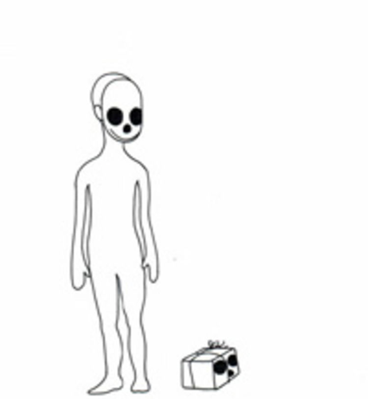 Glücklich allerdings sieht keine der Figuren in den Bildern von Arnika Müll aus, eher skeptisch und nachdenklich. Verletzungen, äußere wie innere, sind ebenso zentrales Thema wie das tägliche Überleben. Immer wieder verweisen Skelette auf innere Schwächen, Ängste und Unzulänglichkeiten. Einige der Figuren scheinen Masken zu tragen, was sich dahinter verbirgt, lässt sich allenfalls ahnen. Andere sind mit Fäden verbunden wie Marionetten. Wenn sie lächeln, hat man sie dazu genötigt. Alle, so scheint es, sind sie einerseits Opfer ihrer Verhältnisse, andererseits scheinen sie sehr genau zu wissen, wie sie von der Außenwelt wahrgenommen werden wollen. Wie das sonnenverbrannte Häschen, das in einer der Zeichnungen in Bikini und Hasenkopfpuschen vor einer Sonnenbank steht. »Egoline super« heißt das Gerät, und seine Benutzerin scheint dies wörtlich zu nehmen, selbst wenn es dazu der Selbstverstümmelung bedarf.