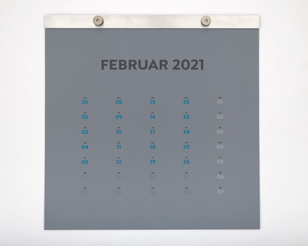 Dieser ebenso schlichte wie edle Kalender besticht dadurch, dass er sein Kalendarium zum Star erhebt, es regelrecht feiert, indem er es als relevantes Gestaltungselement typografisch in die Geometrie des quadratischen Kalender Formates einfügt. Die reduzierte Formensprache, die zurückhaltende Farbigkeit des Papiers ebenso wie der Einsatz von Metall als Träger der Monatsblätter, der am Jahresende als Pin-Board übrigbleibt, wird Design-Fans begeistern. (mehr...)