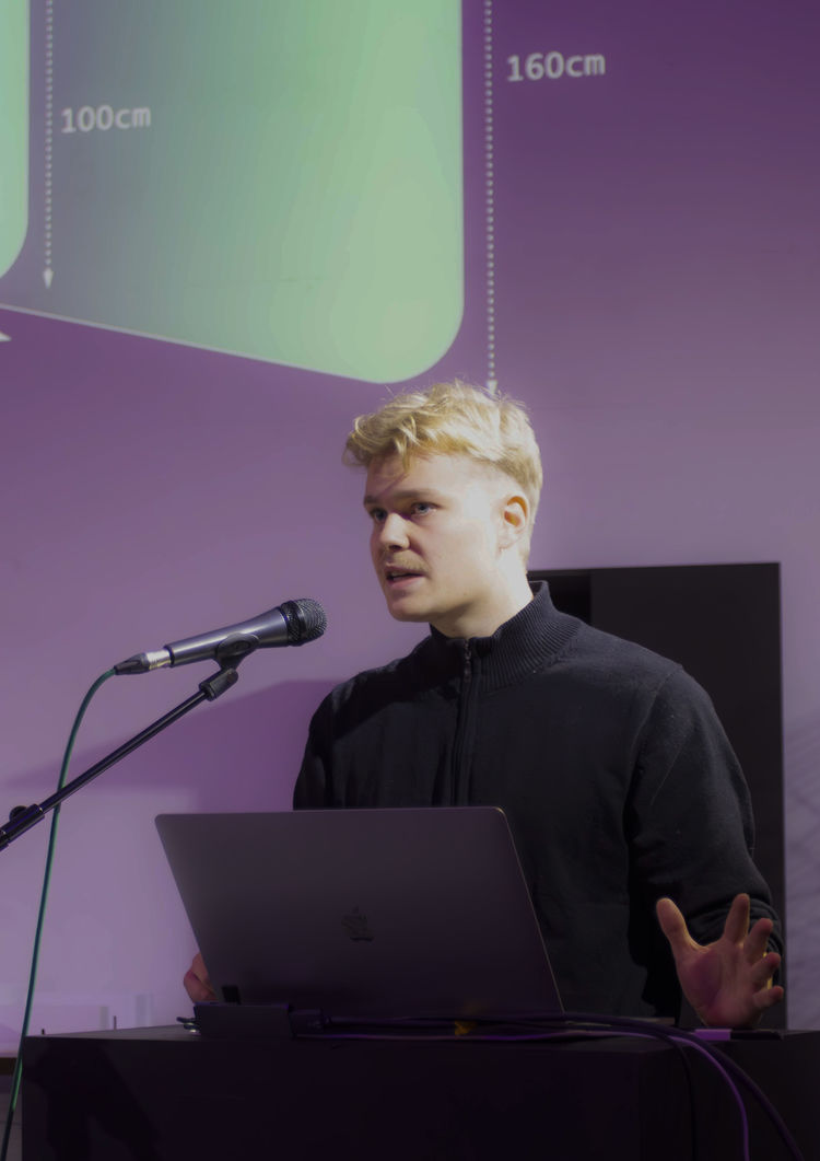 Die elf Diplomand_innen präsentierten ihre Abschlussarbeiten aus den Lehrgebieten Digital Design, Industrial Design, Informationsdesign, Integrierendes Design, Materialdesign und Urban Design in kurzen, prägnanten Vorträgen in der gut gefüllten Aula. Alle Arbeiten setzten sich mit aktuellen Themen wie Klimaschutz, Müllvermeidung oder Digitalisierung der Arbeit auseinander. Im Anschluss an die Präsentation kamen die Diplomand_innen mit interessierten Gästen ins Gespräch.