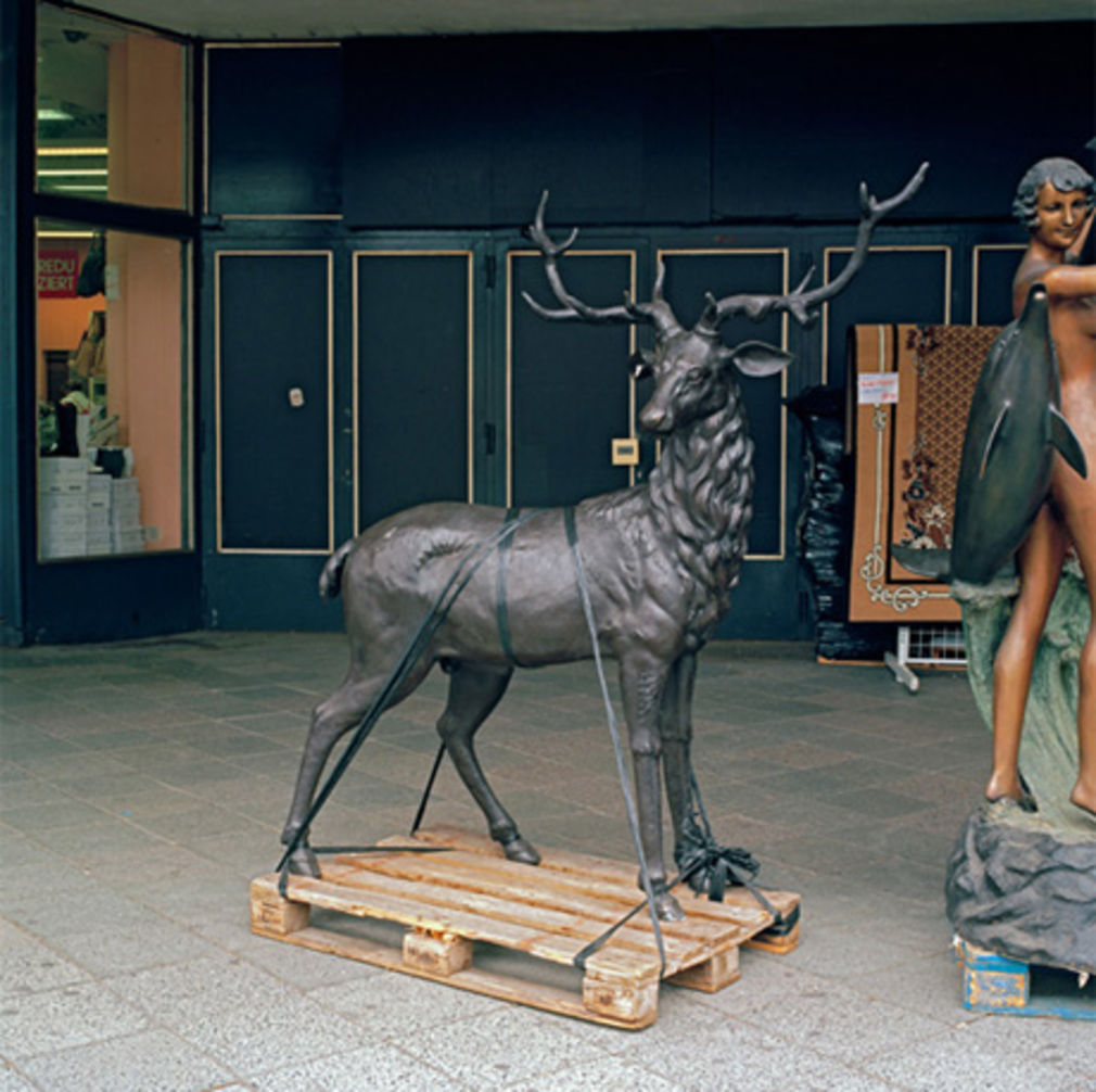 Albrecht-Schoeck reiste auch nach Winneden, wohl getrieben von der Idee oder der Hoffnung, dass hier etwas zu finden sei, dass ebenso alltäglich ist, wie die Container, die er inmitten einer Landschaftsaufnahme in Polen fotografierte; Container, die Waren transportieren, die dann auf Wühltischen in Kaufhäusern landen. Auch die hat er fotografiert und in einer über 5 Meter langen Panoramaaufnahme eines Stockwerkes eines deutschen Kaufhauses festgehalten.