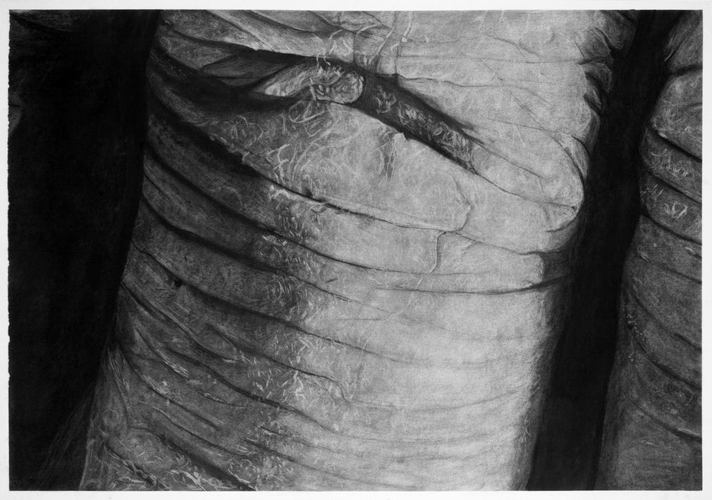 Juewen Zhang, Student im Lehrgebiet Experimentelle Raumkonzepte (Prof. Heiner Blum) an der HfG Offenbach, ist mit den Kohlezeichnungen seiner Hände und der Hände von Freunden Teil der documenta fifteen.