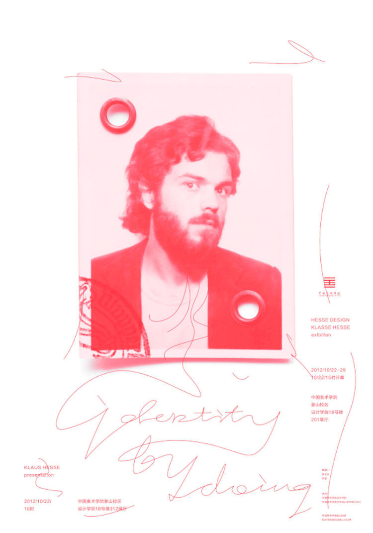 Auf Einladung der CAA wird Prof. Klaus Hesse vom 20. bis zum 26. Oktober 2012 als Jurymitglied bei der »13th Platinum Creative Competition« teilnehmen sowie Vorträge halten und Workshops durchführen. Gleichzeitig findet in der Galerie der Akademie die Ausstellung »Identity by doing« statt. Gezeigt werden ausschließlich Arbeiten von HfG-Studierenden sowie Arbeiten von Klaus Hesse und Hesse Design. Kuratiert wurde die Ausstellung von Zhengda Chen (Dozent CAA) und Jian Xu (Alumni der HfG Offenbach). Die »China Academy of Arts« ist mit 7.000 Studierenden die größte Kunsthochschule Chinas und gehört zu den angesehensten und einflussreichsten Akademien Asiens. Auf Vermittlung des Generalkonsulat der Volksrepublik China in Frankfurt wird Klaus Hesse abschließend einen Vortrag an der Jiatong University in Chongqing halten sowie Gespräche mit Designern und Professoren aus Chongqing und Chengdu führen.