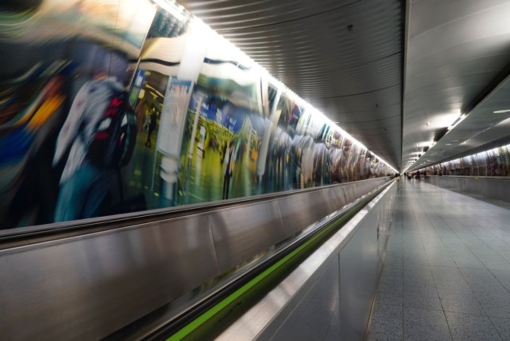 Täglich passieren etwa 12.000 Fluggäste die Unterführung, die die Flugsteige A und B im Sicherheitskontrollierten Schengen-Abflugbereich verbindet.