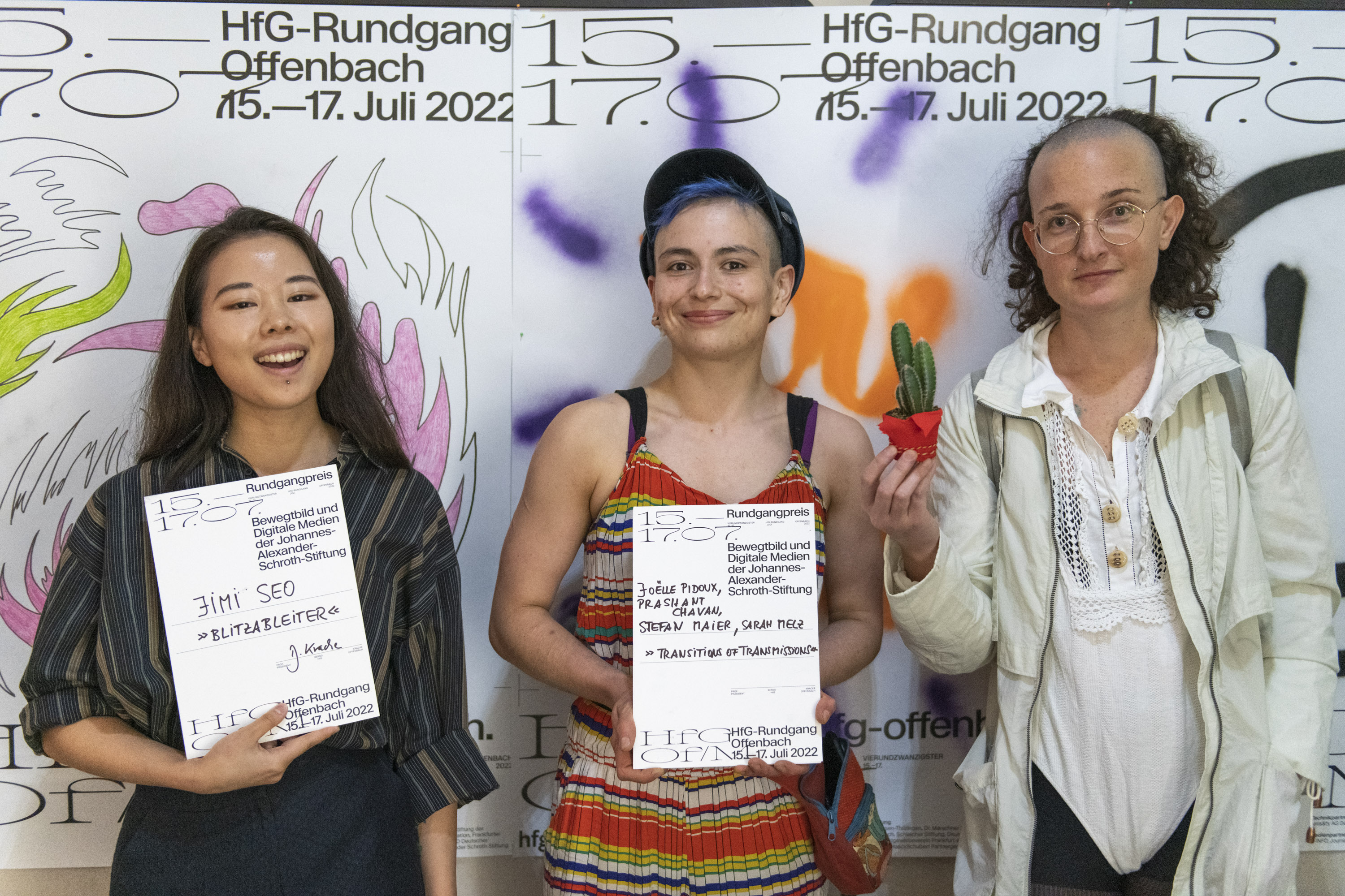 Der Preis wurde drei geteilt und geht an Muriel Hoim für »underneath there’s light«, Jimi Seo für »Blitzableiter« und Joëlle Pidoux, Sarah Melz, Prashant Chavan und Stefan Maier für »Transitions of Transmissions«.