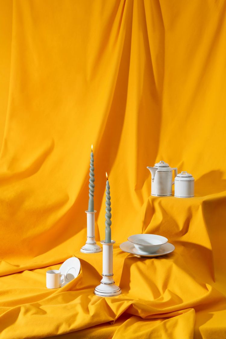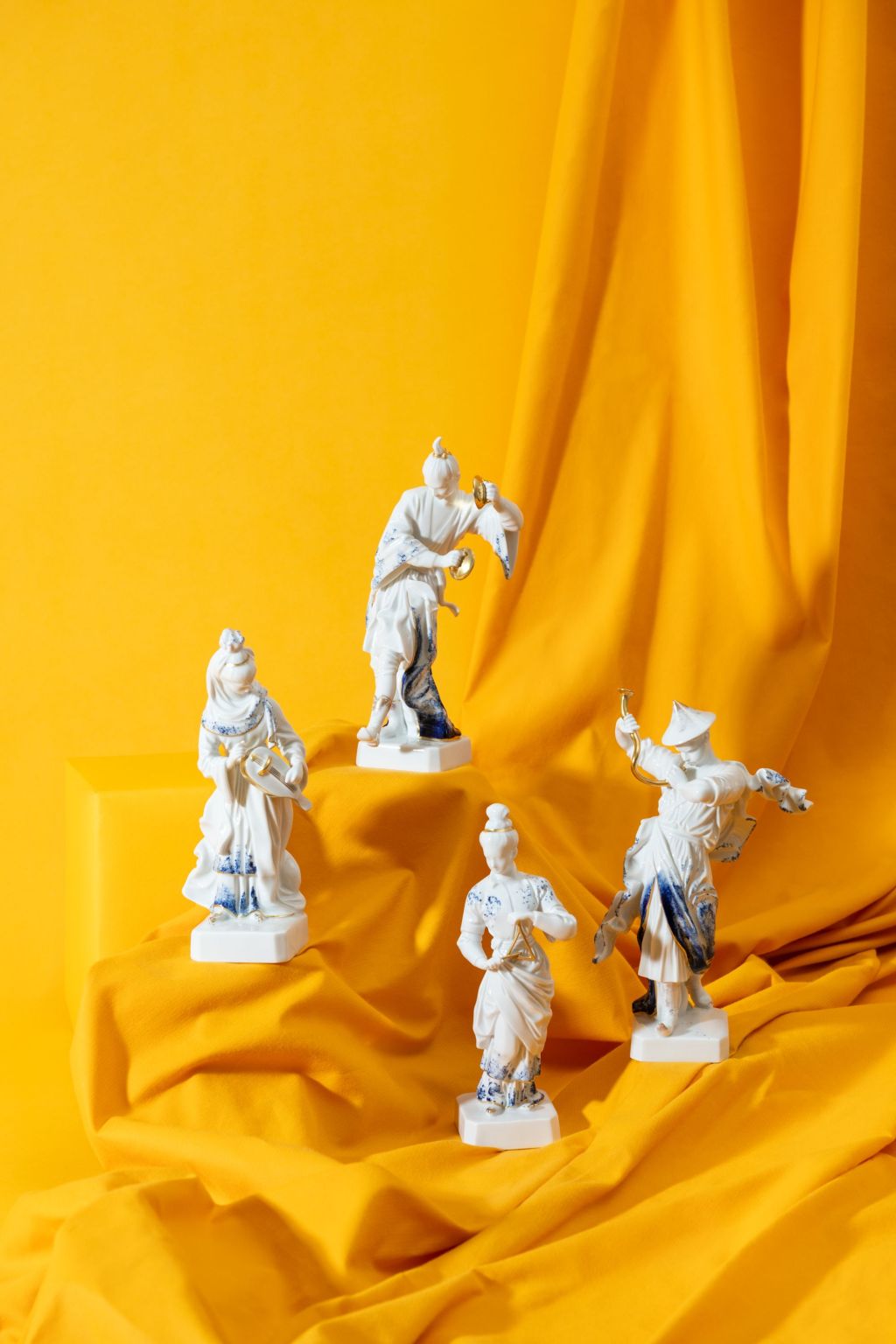 Die vier musizierenden Figuren wurden um 1770 von Johann Peter Melchior modelliert. Das Dekor – Modern Art – wurde in zeitgemäßer Umsetzung von Steffen Taubhorn interpretiert. Im Vordergrund stand die Leichtigkeit der Farben im Kontrast zu den üppigen Gewändern der Figuren aus dem 18. Jahrhundert. Ganz bewusst wurde hier mit den sich auf dem weißen Porzellan auflösenden Pigmenten gespielt und die fröhliche Komposition mit feinem 24 Karat Gold gekrönt.
